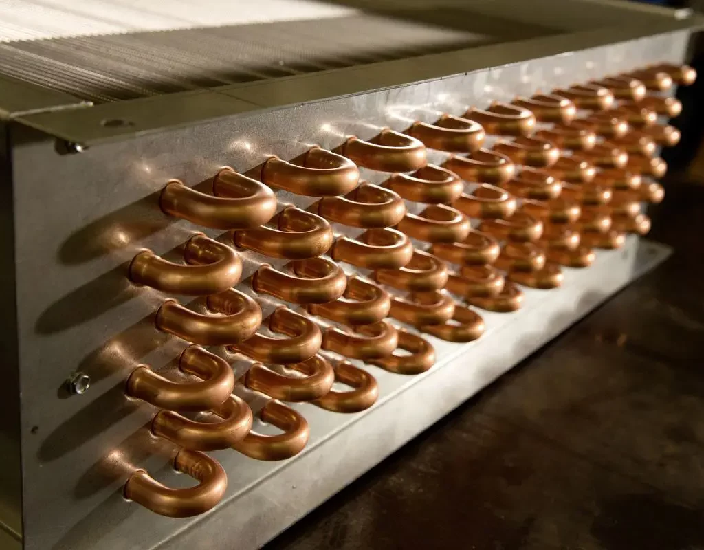 Coils shall be plate fin type construction providing uniform support for all coil tubes. Coils are to be manufactured with die-formed aluminum or copper fins with self-spacing collars which completely cover the entire tube surface.